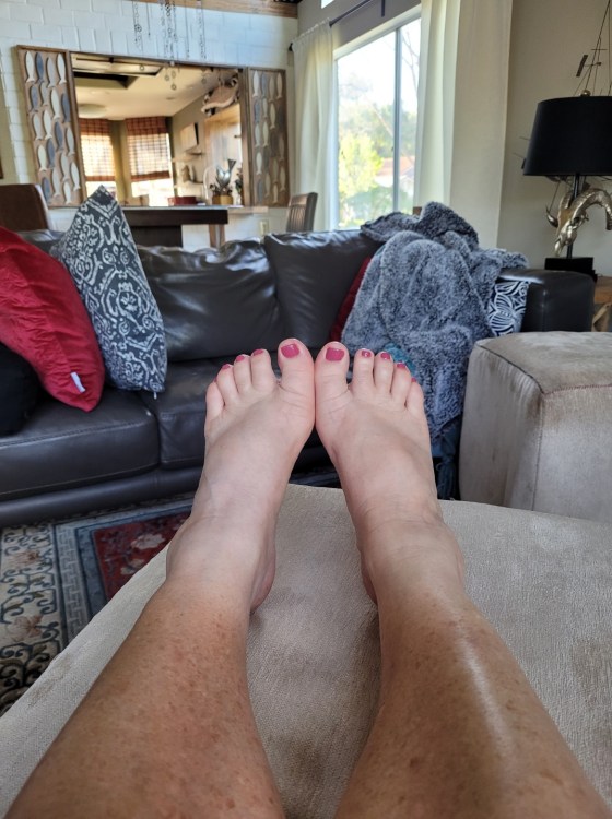 I’m grateful for a few days of cool, cloudy, and gray skies. It suits my mood and need to think. I’m grateful that I can end my day with a nice hot shower. One of best simple pleasures of life. And, I’m grateful for the first spa pedicure I’ve had in more than a year. My feet feel free!